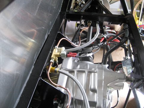 With the car still up on high trestles I thought I would do some more on the boot space and get the fuel tank finished. I started by tidying the cables and pipes making sure nothing was going to dangle or potentially get caught in the rotating drive shafts. I specifically anchored the return fuel pipe to the chassis with a couple of cable ties just in case the IVA inspectors torch shone in that direction.