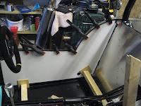 Nothing much to say about the near-side that hasn’t already been said for the off-side. The side panel went on fine – with a bit of fettling where it meets the back panel as I decided to build the back before the front. The suspension went back together without issue including IVA covers.Whilst I had an open (and warm) tube of “black-glue” I thought I would bond the inner side panels. I decided not to rivet – these panels are not for strength or rigidity.