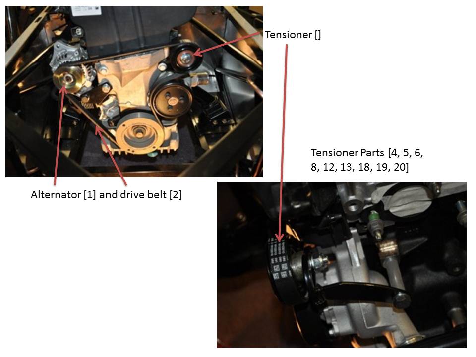 The lower bracket uses the spacer [17] between it and the engine block. The alternator itself is held into the bracket with washers used as spacers.