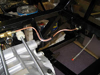 I decided to route the fuel pipes along the drivers side of the central tunnel and the brake pipe and loom along the passenger side. The tricky bit is the route through into the rear of the car between the chassis and diff and ensuring clearance for the hand-brake cables to move unobstructed.