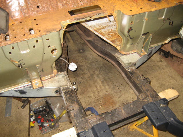 Are here the fun starts. Having removed bolts holding the chassis to the rear tub (some needed an angle grinder) the tub remained firmly in place. Then I realised why.
