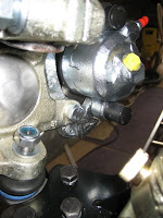 6. Which braided hoses go on the front and which on the rear (small or large). – Thanks to RichardL for a response on this: Long ones on the back and with the very helpful note that the braided line has to wind into the calliper first, then attach to the chassis.